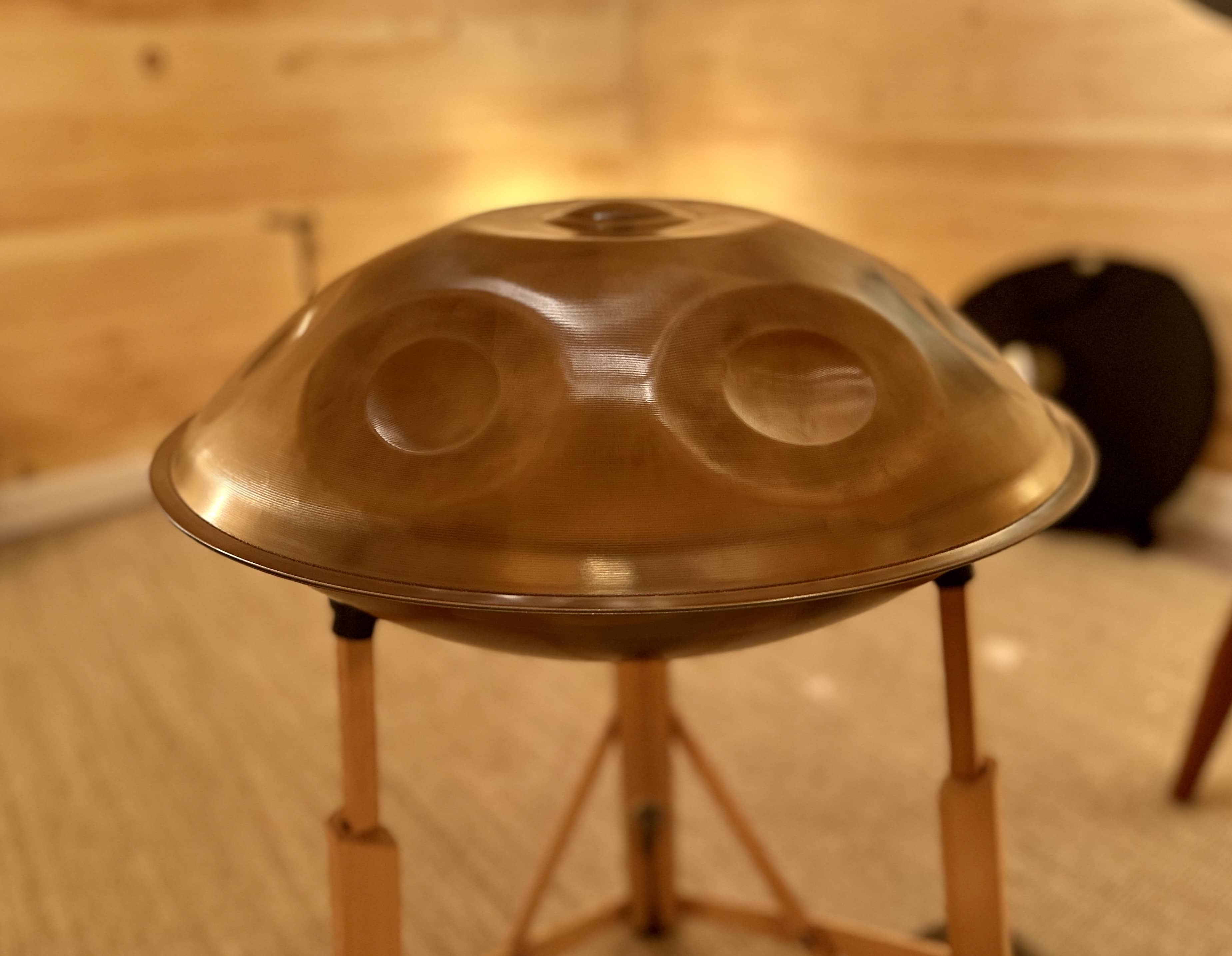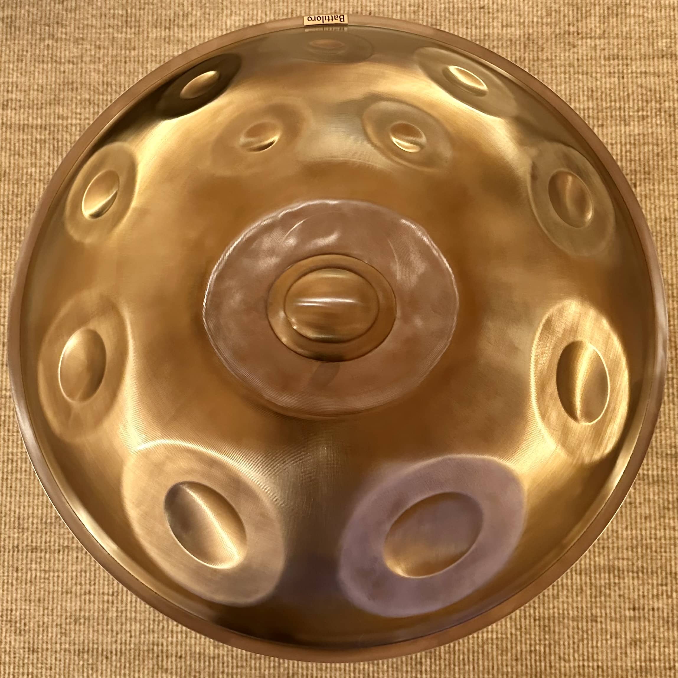 This handpan is part of Battiloro's Mutant lineup, which just means that it has more notes than the typical 8 or 9. The Argus model in a Saladin scale is quite an instrument: It's responsive (of course; it's a Battilloro), with a satisfying bit of extra ring in the notes that I don't hear on all Battiloros. And even with no tone fields on the bottom shell, there's still enough notes on the top—12!—to open up a whole world of music making.